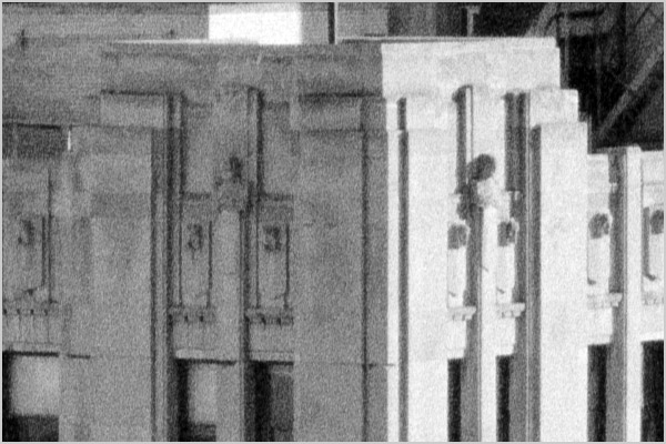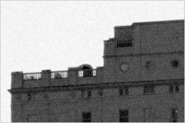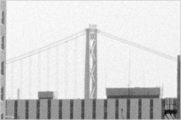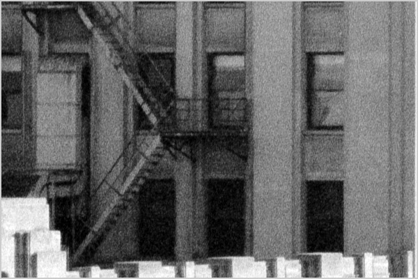The vignetting is completely artificial, as is our owl. So what exactly happens when you take the world's sharpest 6x9 lens (the 65mm f/5.6 Fujinon on the Fuji GSW690III) and combine it with one of the world's finest-grain black-and-white films? Looks a lot like pictures taken with a laser. The camera. A stock GSW690III, shot at 1/60 and f/16, with a G (orange) filter. The film. Current T-Max 100 in 120 size. Developed in T-Max developer (so you do pick up a little film speed but give up some grain). The scans. Done with Vuescan on a Nikon LS-8000 with a glassless (yes, the hated glassless) carrier (see my technique for film flattening here). How big are these enlargements? If your screen is 96dpi, the sections below (scanned at 4,000 dpi - file size 228mb in 16-bit) are the equivalent of a 42x enlargement.